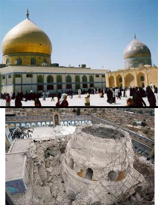 سرداب مقدس و حرم عسکریین علیهم السلام قبل و بعد از تخریب - لعنة الله علی القوم الظالمین